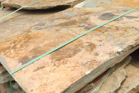自然面锈板岩碎拼石青锈色乱形铺地石贴墙石
